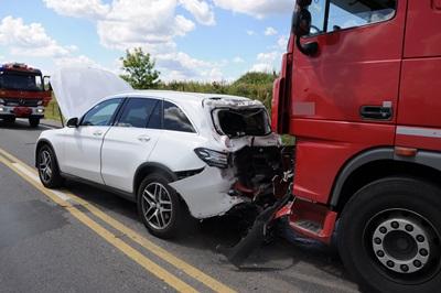 W niedzielę (16.07.) około godz. 12:30 dyżurny KPP w Wyszkowie został powiadomiony o wypadku drogowym w Ojcowiźnie na drodze krajowej nr 8. Jak wynika z pierwszych ustaleń 31 letni kierowca tira nie zachował bezpiecznej odległości między pojazdami i uderzył w tył mercedesa. Na skutek uderzenia obrażeń ciała doznał 53 kierowca mercedesa, którego przetransportowano do szpitala.