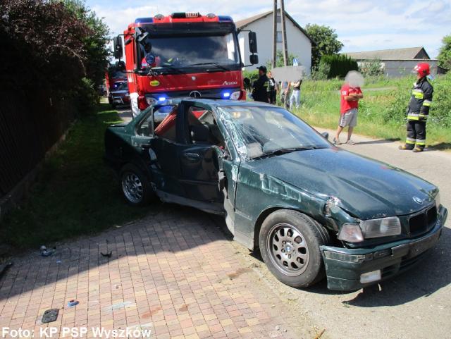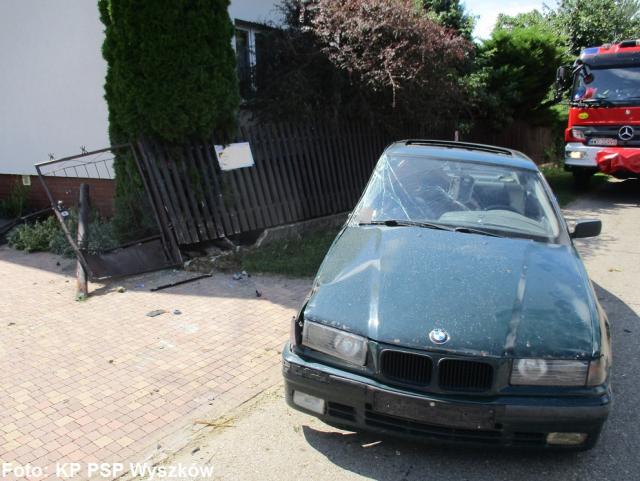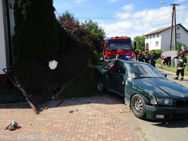 Po przybyciu na miejsce zdarzenia i dokonania rozpoznania strażacy stwierdzili, że doszło do wypadku samochodu osobowego, który wypadł z drogi i uderzył w ogrodzenie jednej z posesji częściowo niszcząc je. Uczestnikiem zdarzenia był tylko kierowca, który po przebadaniu przez pogotowie ratunkowe nie wymagał hospitalizacji.
