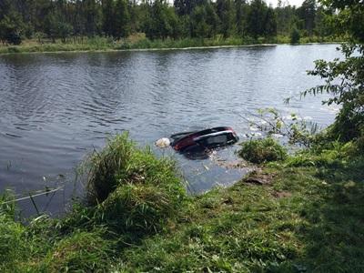 Do zdarzenia doszło w nocy z piątku na sobotę w miejscowości Młynarze gm. Zabrodzie. Jak ustalili policjanci, 24-letnia kobieta kierująca jaguarem na łuku drogi nie dostosowała prędkości do warunków jazdy, zjechała na pobocze, a następnie po skarpie prosto do rzeki. Zarówno kierującej jak i pasażerowi udało się opuścił pojazd zanim całkowicie zatonął. Nikt z podróżujących nie odniósł obrażeń.