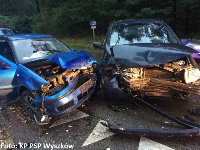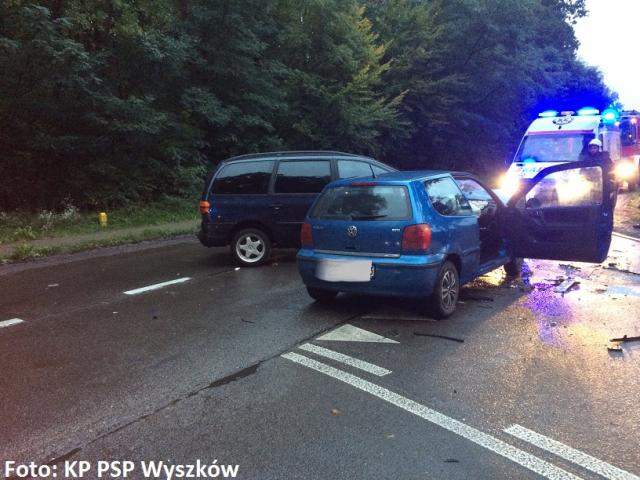Po przybyciu na miejsce zdarzenia stwierdzono, że na skrzyżowaniu doszło do zderzenia dwóch samochodów osobowych. Obydwa samochody znajdowały się na środku skrzyżowania, a osoby nim podróżujące opuściły pojazd o własnych siłach jeszcze przed przybyciem zastępów PSP. Poszkodowanym pomocy medycznej udzielała przybyła na miejsce akcji załoga pogotowia ratunkowego.