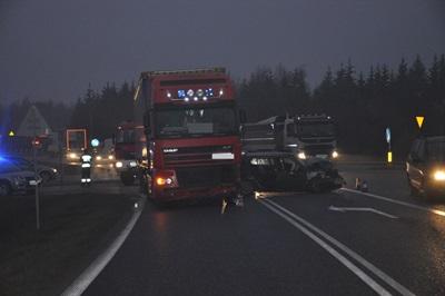 Golf zderzył się z ciężarówką. Do szpitala trafiły 4 osoby (zdjęcia)