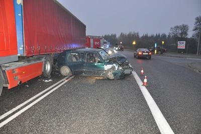 Dzisiaj około godziny 5.30 w miejscowości Turzyn (węzeł trasy S-8) doszło do zderzenia vw golfa z pojazdem ciężarowym daf. Jak wynika ze wstępnych ustaleń, 41-letni kierowca golfa wykonując manewr skrętu w lewo nie ustąpił pierwszeństwa przejazdu jadącemu z naprzeciwka kierowcy TIRa i doszło do zderzenia. W wypadku ranne zostały 4 osoby. Kierowca i 3 pasażerów volkswagena przetransportowano do szpitala. Kierowcy obu pojazdów byli trzeźwi.