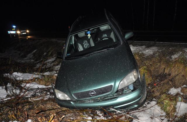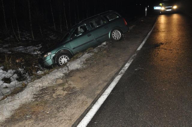 Kierowca auta marki Opel chciał uniknąć potrącenia pieszego, w wyniku czego wpadł w poślizg i wjechał do przydrożnego rowu.
