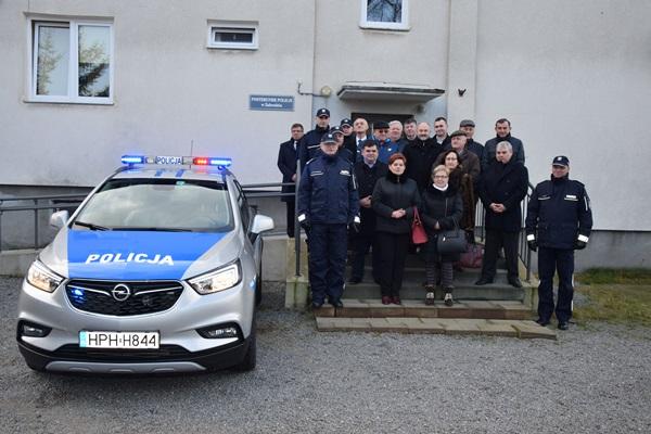 Najnowszy Opel Mokka z napędem 4x4 trafił do zabrodzkich funkcjonariuszy. W uroczystości przekazania oznakowanego radiowozu uczestniczyli: Wójt Gminy Zabrodzie-Tadeusz Michalik, Przewodniczący Rady Gminy Zabrodzie - Janusz Pakuła, Komendant Powiatowy Policji w Wyszkowie - insp. Michał Toporkiewicz, I zastępca Komendanta Powiatowego Policji w Wyszkowie - mł. insp. Zbigniew Zięcin, radni Gminy Zabrodzie oraz policjanci lokalnego posterunku.