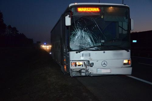 Policjanci wyjaśniają też okoliczności wczorajszego wypadku na trasie S8 w miejscowości Gaj. Do zdarzenia doszło na pasie ruchu w kierunku Warszawy około godz.5:30. Jak wynika z pierwszych informacji, kierujący samochodem audi zjechał na pas wyłączony z ruchu po czym nagle, ponownie wrócił na prawy pas wprost przed jadący za nim autobus. W tym momencie doszło do zderzenia pojazdów. Do szpitala z obrażeniemi ciała przewieziono 60 letniego kierowcę audi.