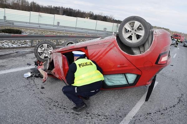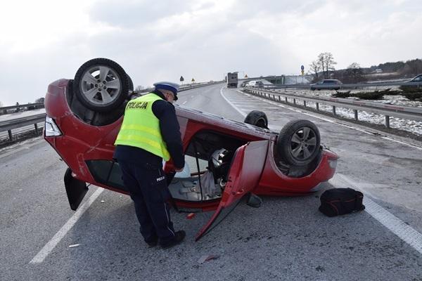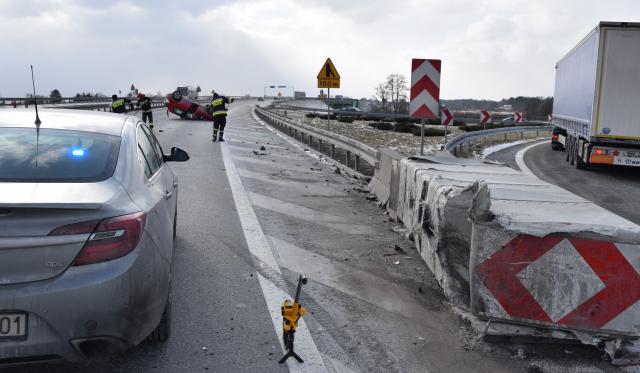 Kierowca Skody jadąc drogą S-8 nie dostosował prędkości do warunków panujących na drodze, stracił panowanie nad pojazdem i uderzył w bariery oddzielające pasy ruchu. Podróż zakończył dachowaniem samochodu. Miał wiele szczęścia, bo ze zdarzenia wyszedł cało.