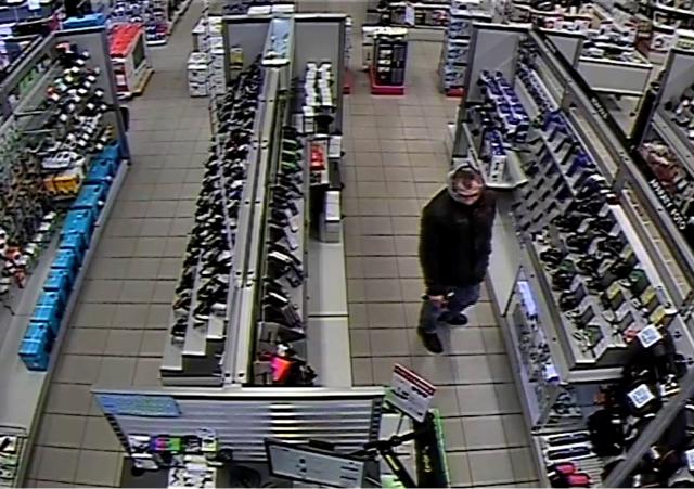 Policjanci z wydziału kryminalnego KPP w Wyszkowie ustalają tożsamość mężczyzny, który usiłował dokonać kradzieży sprzętu RTV w sklepie na terenie Wyszkowa przy ul. Świętojańskiej w dniu 23 lutego 2018 roku.