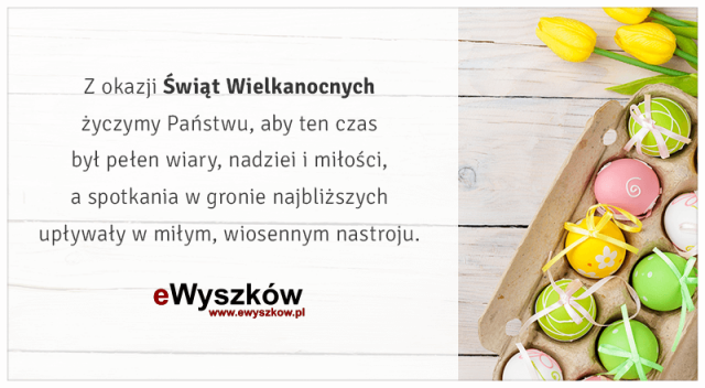 Z okazji świąt Wielkiej Nocy życzymy Czytelnikom eWyszków zdrowia, spokoju i rodzinnego ciepła. Niech ten niezwykły czas przyniesie Wam chwile radosnej nadziei oraz słonecznych spotkań z budzącą się naturą.