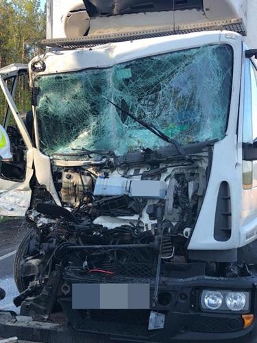 Zderzenie trzech samochodów ciężarowych zablokowało wczoraj rano na kilka godzin ruch na trasie K-8.
