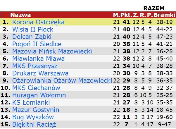 Od początku spotkania uwidoczniła się przewaga przyjezdnych, którzy bardzo często gościli pod wyszkowską bramką. Efektem tego były dwie strzelone bramki przez gości. Najpierw na listę strzelców wpisał się Jakub Wróblewski, a później Marcin Tomczak.