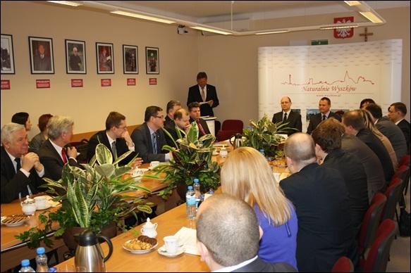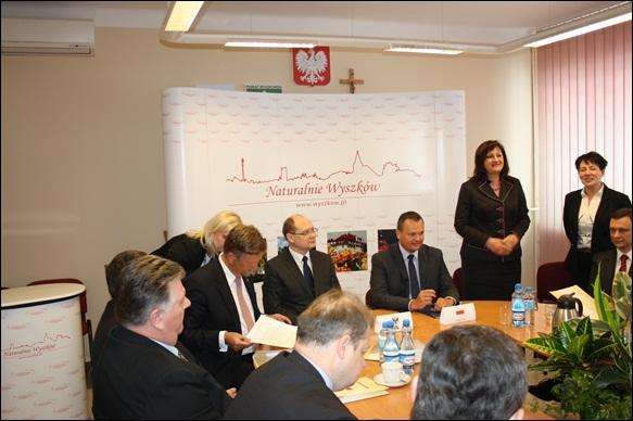 8 lutego br. w Urzędzie Miejskim w Wyszkowie odbyło się spotkanie partnerów i patronów Forum, w którym udział wzięli przebywający z wizyta w Wyszkowie przedstawiciele Urzędu Miasta w Winnicy oraz Obwodu Winnickiego. W spotkaniu udział wzięli również: w imieniu Wojewody Mazowieckiego: Izabela Siander - pełnomocnik wojewody mazowieckiego do spraw organizacji pozarządowych, w imieniu Marszałka Województwa Mazowieckiego - Tomasz Waźbiński - zastępca Dyrektora Kancelarii Marszałka Województwa Mazowieckiego, Maciej Piłat z Polsko Ukraińskiej Izby Gospodarczej, Aleksander Boryszenko - pierwszy sekretarz do spraw współpracy Regionalnej Ambasady Ukrainy w Polsce, Andrzej Porawski, dyrektor Biura Związku Miast Polskich, Marcin Nosal, naczelnik Wydziału Europy Wschodniej Ministerstwa Spraw Zagranicznych. W spotkaniu uczestniczyli również przedstawiciele Szkoły Wyższej im. P. Włodkowica w Płocku: doc. dr Robert Żak i kanclerz Krzysztof Falba - w wyszkowskiej filii uczelni odbywać się będzie forum. Gminę Wyszków reprezentował Burmistrz Grzegorz Nowosielski i zastępcy: Adam Mróz i Adam Warpas, radni miejscy: Jerzy Kruk, Jan Abramczyk i Wojciech Chodkowski oraz urzędnicy magistratu.