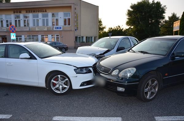 W środę (29.08) tuż przed godziną 17.00 w Wyszkowie na skrzyżowaniu ulicy Białostockiej z ul. Nadgórze doszło do wypadku drogowego z udziałem trzech samochodów osobowych. W wstępnych ustaleń policjantów pracujących na miejscu zdarzenia drogowego wynika, że 80-letni kierujący toyotą wyjeżdżając z drogi podporządkowanej, ul. Nadgórze nie ustąpił pierwszeństwa przejazdu prawidłowo jadącemu ul. Białostocką osobowemu lexusowi. W wyniku zderzenia obydwa pojazdy uderzyły w stojące na przeciwległym pasie ruchu audi, którego kierujący czekał na możliwość skrętu w ul. Nadgórze. Z obrażeniami ciała do szpitala została przewieziona 78-letnia mieszkanka powiatu wyszkowskiego, pasażerka toyoty.