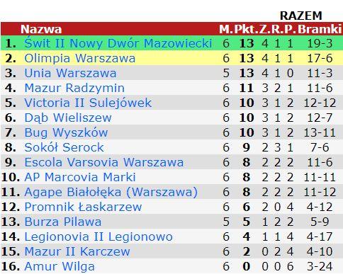 Dzięki tej wygranej piłkarze z Wyszkowa po VI kolejkach ligowych zajmują 7 lokatę w tabeli z dorobkiem 10 punktów. Do lidera tabeli tracimy jedynie 3 punkty.