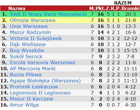 Ostatecznie przegraliśmy z warszawską Olimpią 2-4 i po 7 kolejkach LO zajmujemy 7 pozycję w lidze.