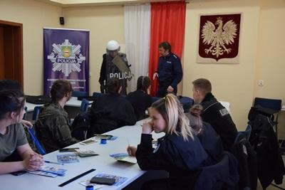 Już od kilku lat wyszkowska policja włącza się w realizację dnia przedsiębiorczości. Dla chętnych uczniów szkół średnich, którzy być może w przyszłości wstąpią w szeregi policji, to doskonała okazja do zdobycia cennych informacji mogących pomóc w podjęciu decyzji. W trakcie spotkanie młodzież zapoznała się ze strukturą organizacyjną policji, z wymaganiami i poszczególnymi etapami rekrutacji. Pozyskała informację o wykształceniu, umiejętnościach czy predyspozycjach niezbędnych do wykonywania zawodu policjanta.