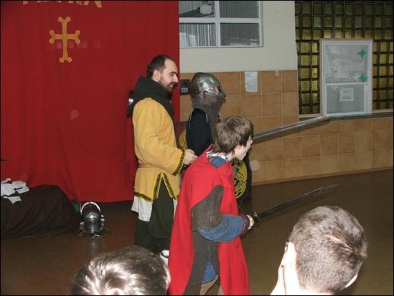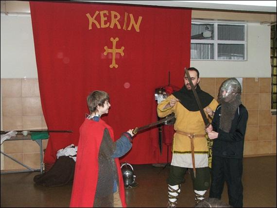 Aby przekonać uczniów, że historia nie jest nudną nauką, lecz fascynująca przygodą, nauczycielki Hanna Czyżo i Jolanta Paczkowska zaprosiły do naszej szkoły Brać Rycerską "Kerin".