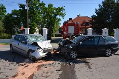 Czołowe zderzenie dwóch osobówek (zdjęcia)