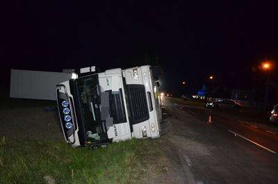 W niedzielę wieczorem dyżurny policji otrzymał zgłoszenie o wypadku w Łosinnym. Ze wstępnie zebranych informacji wynika, że kierująca samochodem bmw wyjeżdżając tyłem z posesji nie zachowała ostrożności i przekroczyła oś jezdni, co spowodowało, że kierowca ciężarówki chcąc uniknąć zderzenia zjechał na pobocze, gdzie doszło do wywrócenia pojazdu.