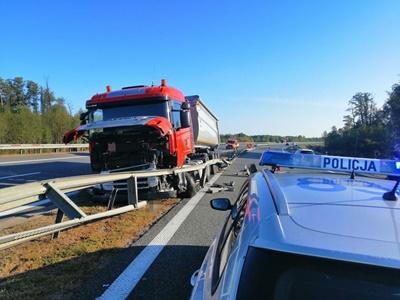 Ciężarówka uderzyła w bariery ochronne (zdjęcie)