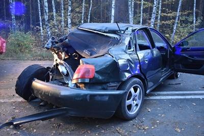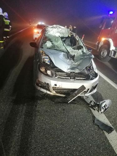 Zderzenie audi z jeleniem. Policja apeluje o ostrożność (zdjęcia)
