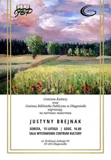 Dzisiaj zorganizowany zostanie kolejny wernisaż Justyny Brejnak. Wszyscy, którzy chcą zobaczyć prace artystki, powinni odwiedzić Centrum Kultury w Długosiodle. Początek wernisażu o godz. 16.00.