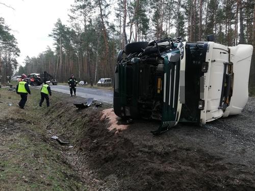 Wyszkowscy policjanci ustalają okoliczności tego zdarzenia, w wyniku którego kierujący ciągnikiem (26 lat) doznał obrażeń i został przetransportowany do szpitala. W miejscu wypadku doszło do utrudnień w ruchu, ponieważ w wyniku zderzenia pojazd ciężarowy wywrócił się i zablokował pasy ruchu w obu kierunkach. W celu usprawnienia ruchu funkcjonariusze kierowali nadjeżdżające pojazdy na objazdy.