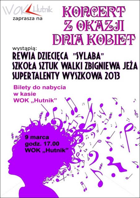 Wyszkowski Ośrodek Kultury "Hutnik" w ramach prezentu z okazji święta kobiet postanowił zorganizować koncert- Rewia "Sylaba" i jej Goście.