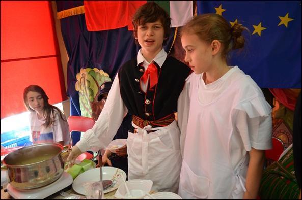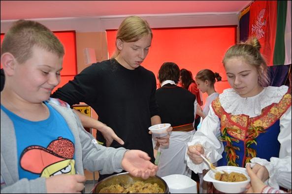 Oprócz interesujących wiadomości dotyczących krajów V4 każda grupa przygotowała konkursy i quizy dla zaproszonej młodzieży, nagradzane specjalnymi wypiekami i słodkościami. Niezwykłym zainteresowaniem zaproszonych cieszył się kącik smaków i zapachów. Tu przedstawiciele grup zamienili się w prawdziwych kucharzy, którzy serwowali narodowe potrawy z krajów Grupy Wyszehradzkiej. Nie zabrakło więc polskiego bigosu, węgierskiego gulaszu czy pierogów. Na deser rozdawano przepyszne ciasta, bezy i cukierki. Każdy z uczniów mógł spróbować przygotowanych w dużych ilościach potraw, np. Michał z grupy czeskiej przygotował osobiście aż 150 sztuk knedli.