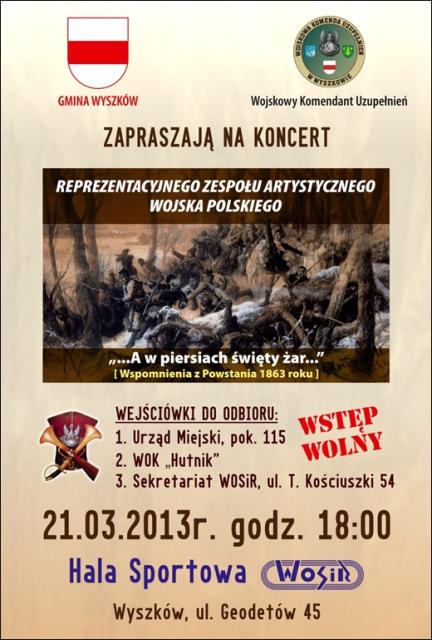 Dnia 21 marca o godz. 18.00 w naszym mieście odbędzie się Koncert Reprezentacyjnego Zespołu Artystycznego Wojska Polskiego.