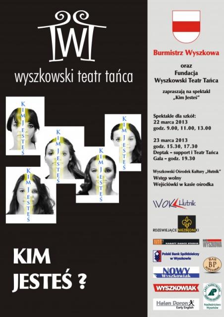 Już od 22 marca będziemy mogli obejrzeć spektakl "Kim jesteś", zorganizowany przez Fundację "Wyszkowski Teatr Tańca" i Burmistrza Wyszkowa.