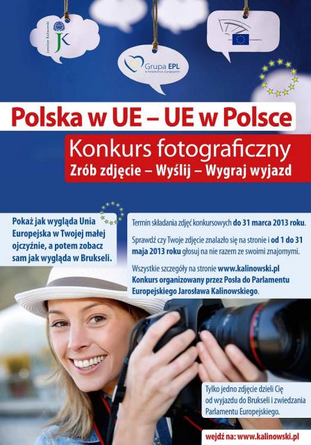 Poseł Jarosław Kalinowski zaprasza do uczestnictwa w konkursie fotograficznym "POLSKA W UE - UE W POLSCE", w którym można wygrać WYJAZD DO BRUKSELI.