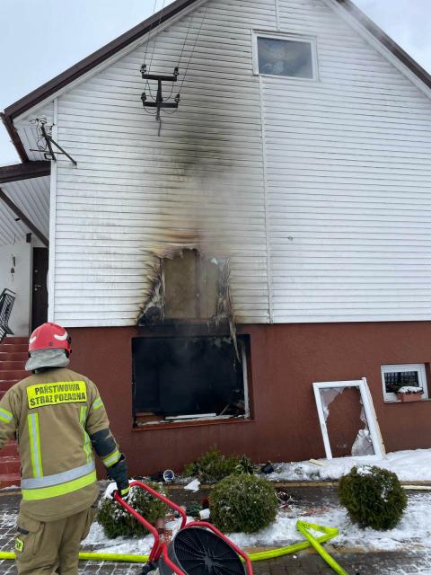 Przybyli na miejsce zdarzenia strażacy, zabezpieczyli miejsce zdarzenia i podali dwa prądy gaśnicze wody - z zewnątrz przez otwór okienny i od środka. W momencie zdarzenia nikt nie przebywał wewnątrz budynku. Po opanowaniu ognia z budynku wyniesiono butlę z gazem. Gdy pożar został całkowicie ugaszony budynek przewietrzono przy pomocy wentylatora oraz sprawdzono kamerą termowizyjną i miernikiem wielogazowym.