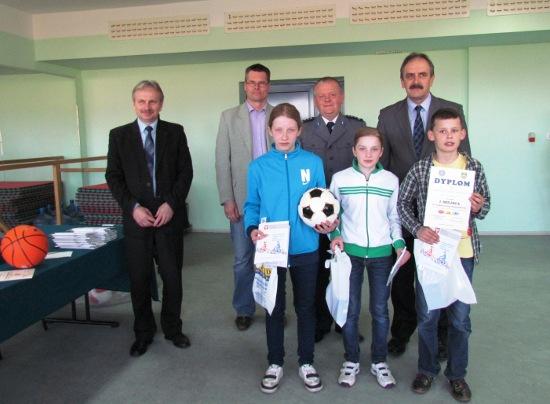 Nagrody wręczali: Starosta Powiatu Bogdan Pągowski, Komendant Powiatowy Policji w Wyszkowie Adam Krzemiński oraz przedstawiciel Wojewódzkiego Ośrodka Ruchu Drogowego Grzegorz Kaliszewski.
