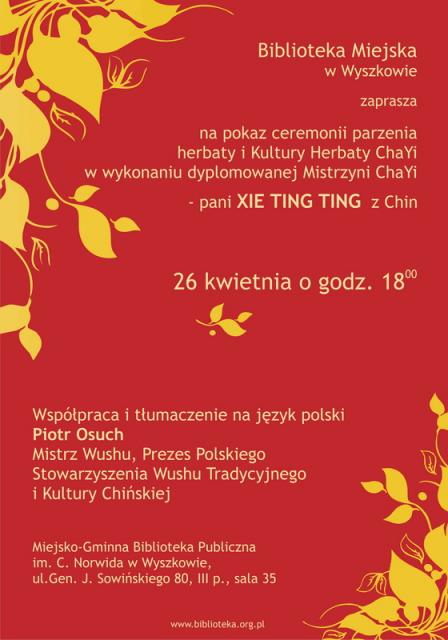 Biblioteka Miejsko-Gminna w Wyszkowie zaprasza na pokaz ceremonii parzenia herbaty Chayi.