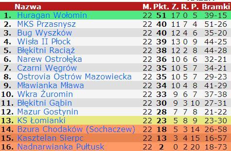 Tabela pochodzi z portalu: www.90minut.pl