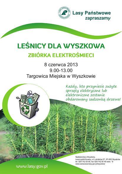 Wyszkowscy Leśnicy zapraszają wszystkie osoby, które posiadają niepotrzebny sprzęt elektryczny lub elektroniczny na Targowicę Miejską w Wyszkowie.