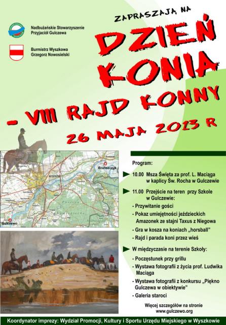 Burmistrz Wyszkowa i Nadbużańskie Stowarzyszenie Przyjaciół Gulczewa zapraszają na Dzień Konia-VIII Rajd-Konny.