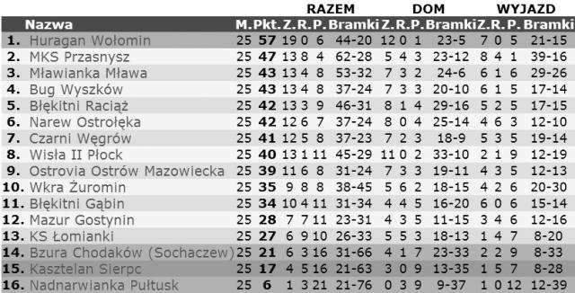 Po porażce w Mławie, Bug spadł o jedną pozycję w ligowej tabeli i zajmuję czwartą lokatę.