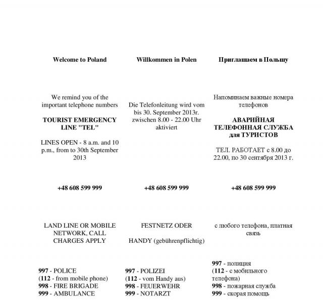 W tym roku po raz pierwszy Telefon Bezpieczeństwa został przyłączony do Polskiego Systemu Informacji Turystycznej. Dzięki temu każdy bardzo szybko będzie mógł uzyskać informacje o uzyskaniu pomocy w nagłych sytuacjach kryzysowych, takich jak kłopoty ze zdrowiem, zaginięcie dokumentów itp. Infolinia będzie obsługiwana przez operatorów w trzech językach: angielskim, niemieckim i rosyjskim. Baza danych jest tworzona w ścisłej współpracy z lokalnymi organizacjami turystycznymi - znajduje się w niej ponad 10 tys. miejsc noclegowych, ponad cztery tysiące atrakcji turystycznych i 23600 restauracji.