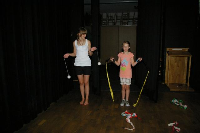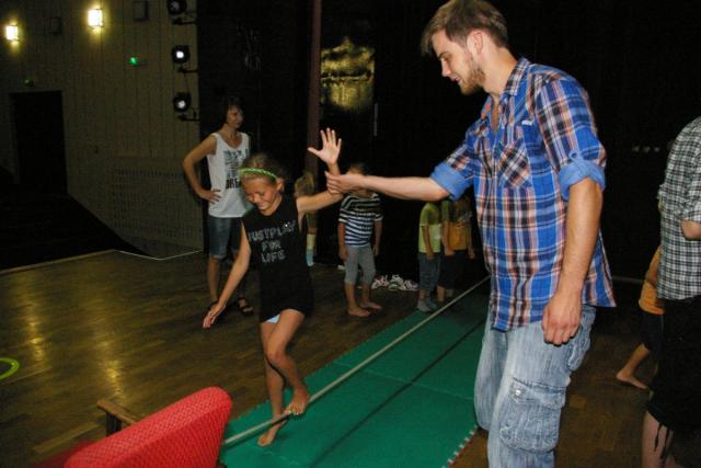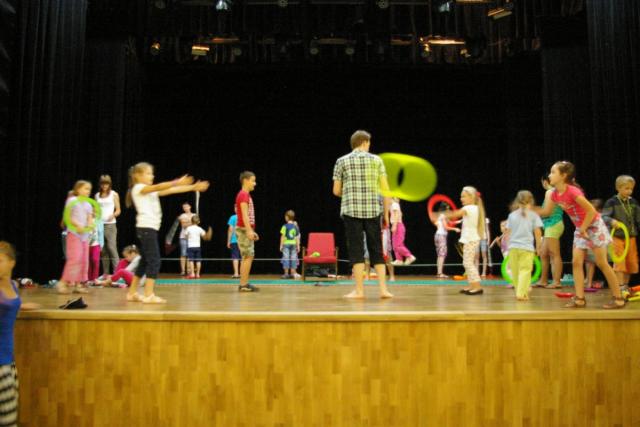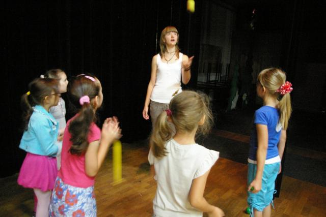 Po tygodniach pracy nad swoimi umiejętnościami, dzieci mogły odpocząć podczas seansu kinowego z bajką "Latająca maszyna", aby następnie, pełne energii licznie pojawić się na kolejnych zajęcia - warsztatach kuglarskich. Dzielnie zmagały się z technikami cyrkowymi wymagającymi wiele wysiłku. Trzy dni intensywnej pracy zostanie nagrodzone. Interaktywny spektakl "Cyrkowe wyczyny klauna i dziewczyny" tematycznie zakończy pierwszą połowę wakacji w "Hutniku".