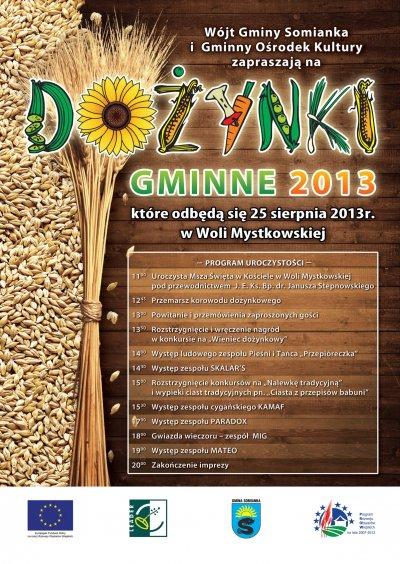 Gminy Somianka serdecznie zaprasza na Dożynki Gminne 2013, które odbędą się w niedzielę na placu przed kościołem w Woli Mystkowskiej. Gwiazdą wieczoru będzie zespół MIG.