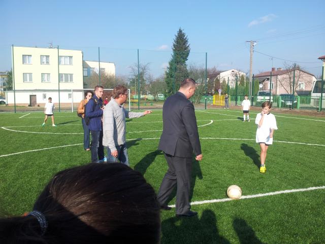 W uroczystości otwarcia wziął udział m.in. burmistrz Grzegorz Nowosielski ze swoim zastępcą, Adamem Mrozem, a także nauczyciele i uczniowie placówki. Generalnym wykonawcą inwestycji była firma Garden Sport Service z Legionowa. Całkowity koszt budowy to około 522.000,00 zł brutto. Inwestycja została dofinansowana przez Ministra Sportu i Turystyki ze środków Funduszu Rozwoju Kultury Fizycznej w ramach Wojewódzkiego Programu Rozwoju Bazy Sportowej w kwocie 100 tysięcy złotych;