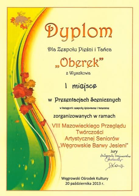 Do przeglądu zgłosiło się 30 zespołów śpiewaczych i tanecznych, z których 15 zakwalifikowano do prezentacji. I miejsce w Prezentacjach Scenicznych w kategorii zespoły śpiewacze i taneczne zdobył ZPiT "OBEREK".